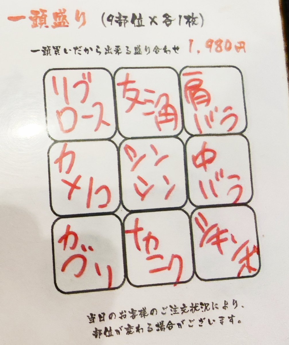 一頭盛りという色んな部位の盛り合わせが美味しかったよ🤤 pic.twitter.com/mLzrbzuLEY