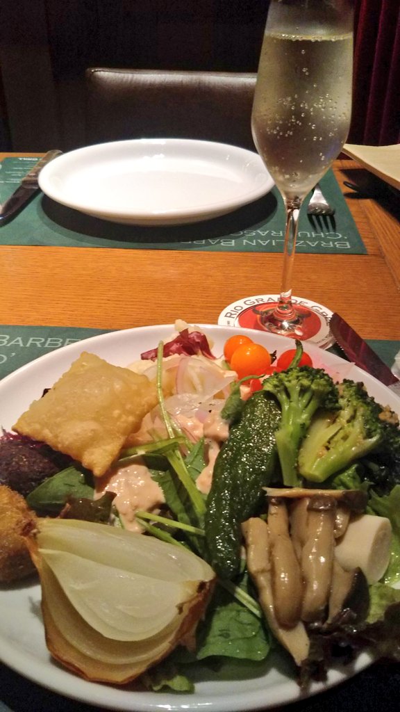 初めて利用した店で、肉だけでなく海鮮があったのは珍しかったけど、肉の出てくるペースや味付け、サラダバーの品のバリエーション等はバルバッコアにちょいと劣るかな…と思いました。 pic.twitter.com/o9ri1K7QBA