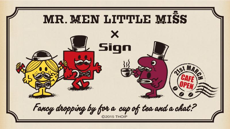 代官山のカフェ「Sign」では、イギリス文化に触れられる場所をテーマに「MR. MEN LITTLE MISS」をイメージしたカフェを3/21(土・祝)~4/12(日)の期間限定オープン! sanrio.eng.mg/e5402 pic.twitter.com/Xy9LJqB5Nl 2015-03-19 15:00:00
