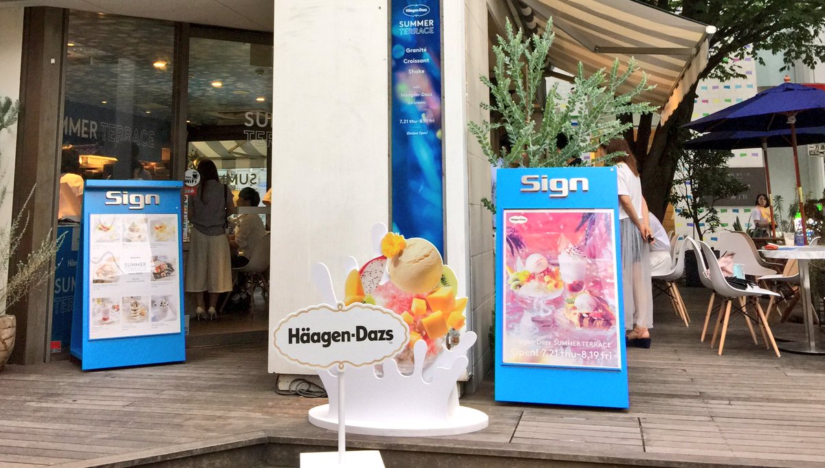 7/21木-8/19金、ハーゲンダッツの夏限定店舗Haagen-Dazs SUMMER TERRACEが代官山のSign daikanyamaにオープン。グラニテやメゾンカイザーのクロワッサンとの組み合わせやシェイクを提供。11時〜 pic.twitter.com/YTwcvGgCe9 2016-07-20 22:38:00