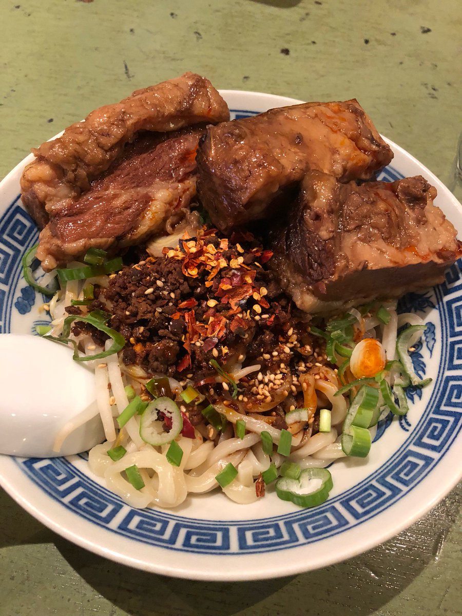 汁なし坦々麺、半チャットセットにトッピングで牛バラ。牛バラが多すぎるので連れの同僚とシェアするという、完成されたスタイルを確立した。今年も極グループにはお世話になりそうです。#恵比寿ランチ (@ ちょもらんま酒場 恵比寿東口店 in 渋谷区, 東京都) swarmapp.com/c/9Bv0OBC4Mgg pic.twitter.com/jsCuONNleT 2020-01-06 13:32:00