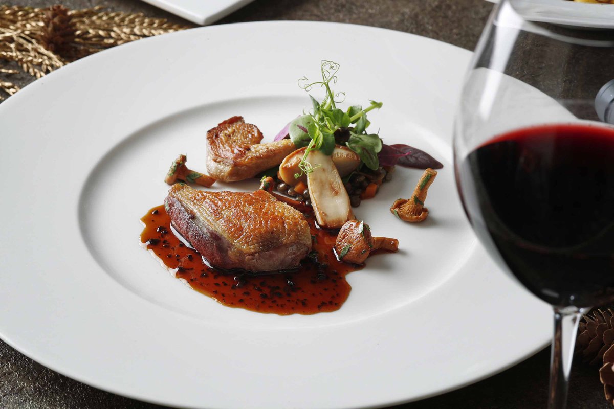 「ビクターズ」では栗や銀杏、茸といった、厳選した秋の食材をふんだん取り入れた秋のプリフィクスコースでをご用意。「小鳩のロースト フランス産キノコ とトリュフソース」など、香りからも味わいからも秋を感じていただけるお料理をお楽しみいただけます。