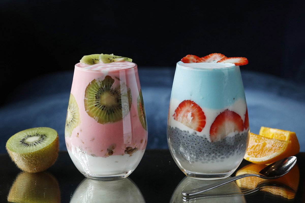 ギリシャヨーグルトに、スーパーフードのチアシード、季節のフレッシュフルーツを加え、濃厚でヘルシーなスムージーに仕上げました。